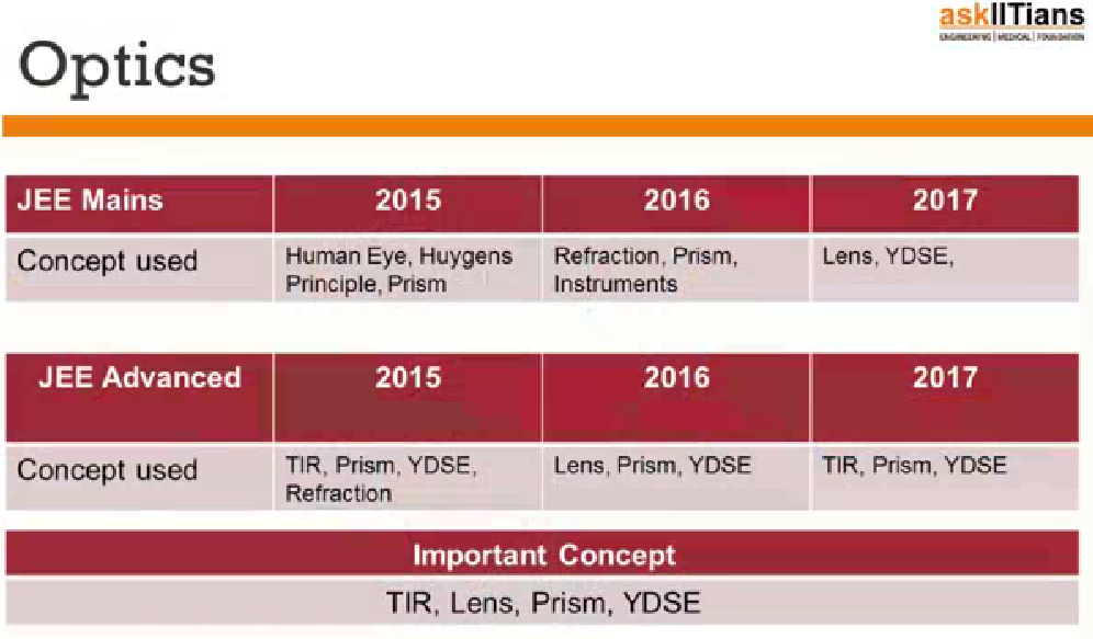As per our analysis, a question from YDSE, Prism and TIR (Total Internal Reflection) is most likely to come in either JEE Mains or Advanced.