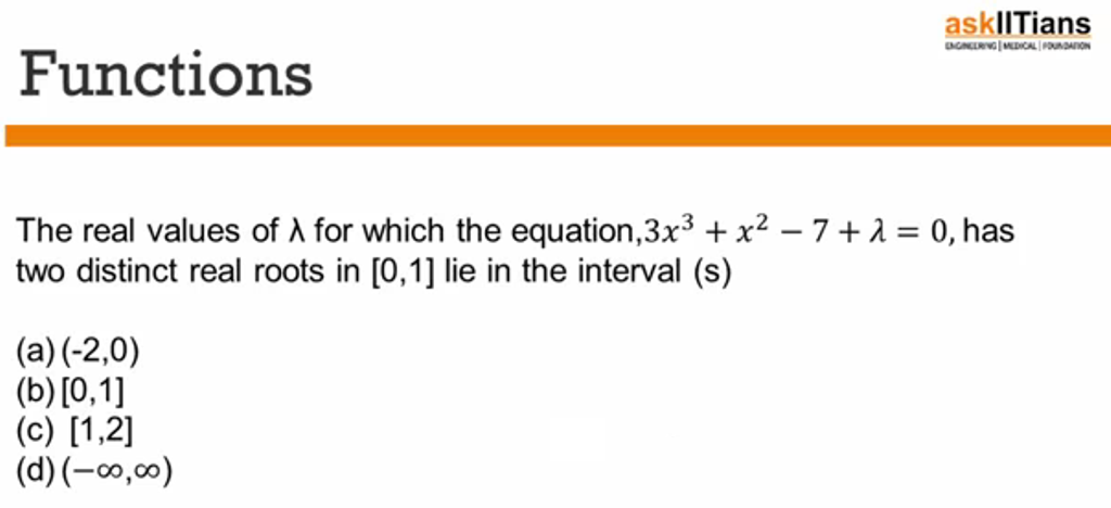 One thing to keep in mind is that Functions should be the first chapter on the list while preparing for Calculus as it is used in almost every topic of it. Also, you need to understand that “Functions†is not much favoured in JEE Mains but is hot favourite in JEE Advanced.