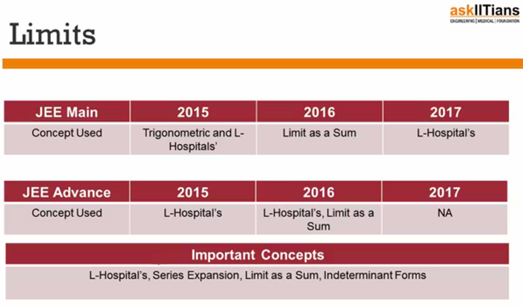 Limits is one topic which has very limited concepts but if you master it then you can easily excel in both JEE Mains and Advanced. Let me show you an analysis that it has appeared in previous exams.