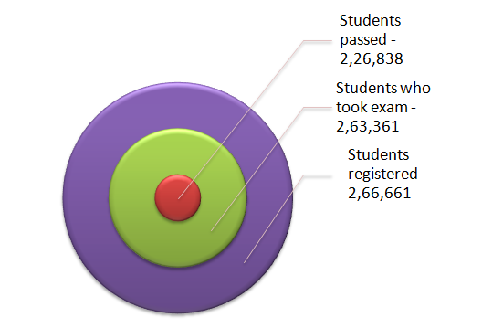 As per the trend from last seven years, girls have outshined boys this year too. The overall pass percentage of girls is 87.56% in 2015 while it is just 77.77% for boys – a difference of more than 9.79%.