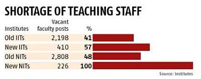According to the Business Standard, old IITs face shortage of 41% teaching staff too: