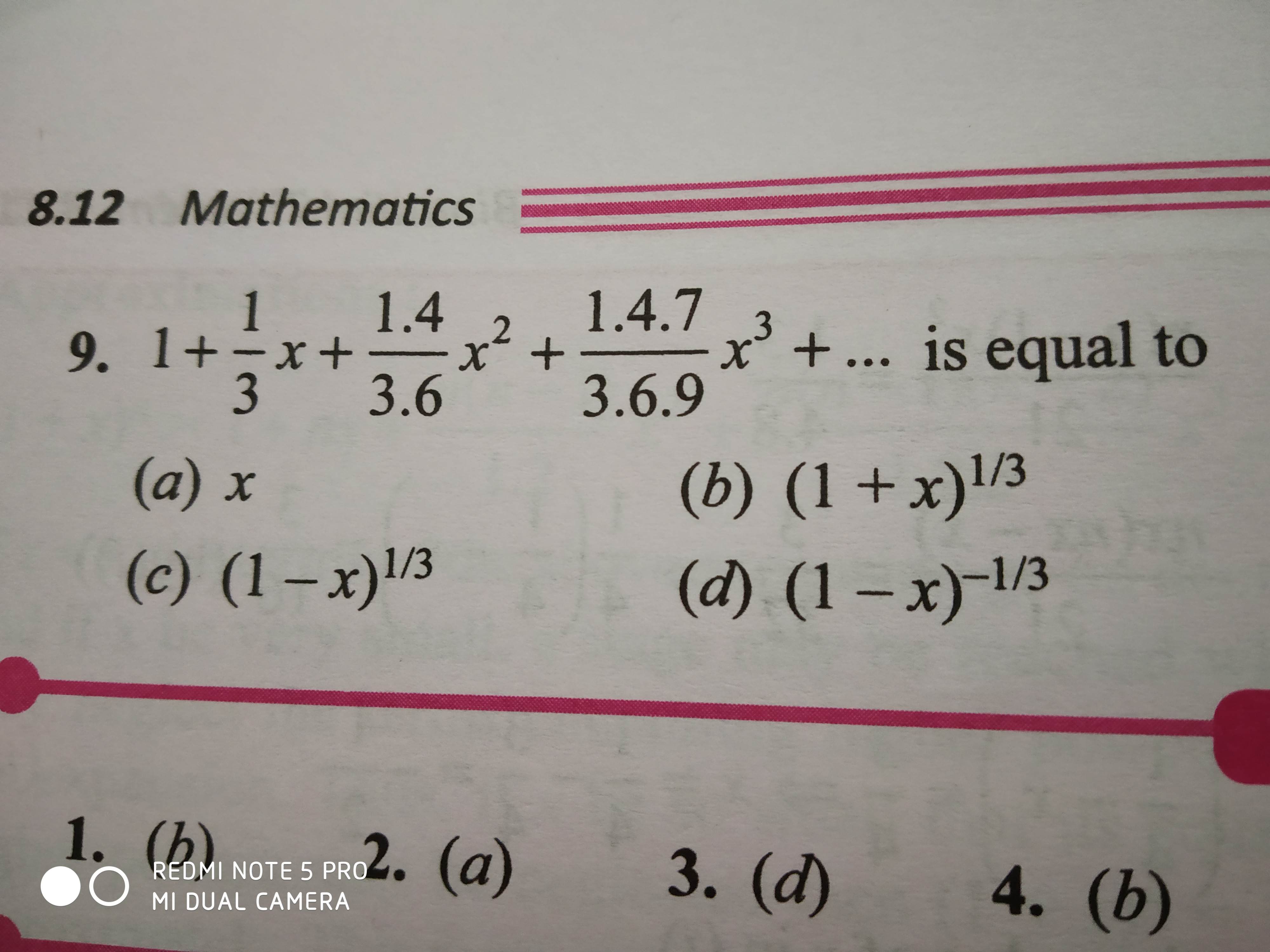 Find the value of 1+1/3x+1.4/3.6x2+1.4.7/3.6.9x3.............................=