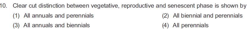 Clear cut distinction between vegetative, reproductive and senescent phase is shown by