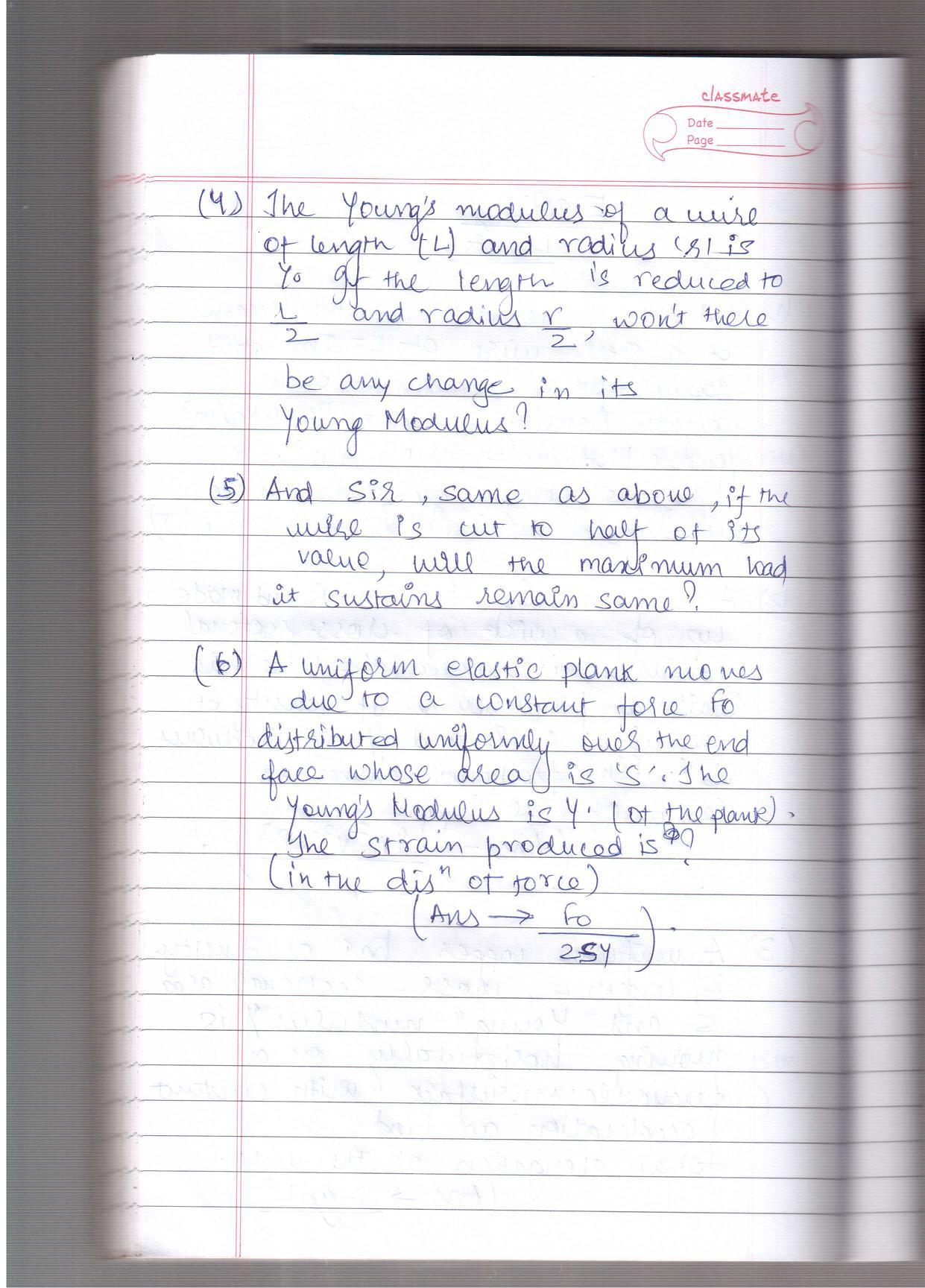 5. There will be no change in the Young’s modulus because it is property of the material. It does not depend on the size and measurements.