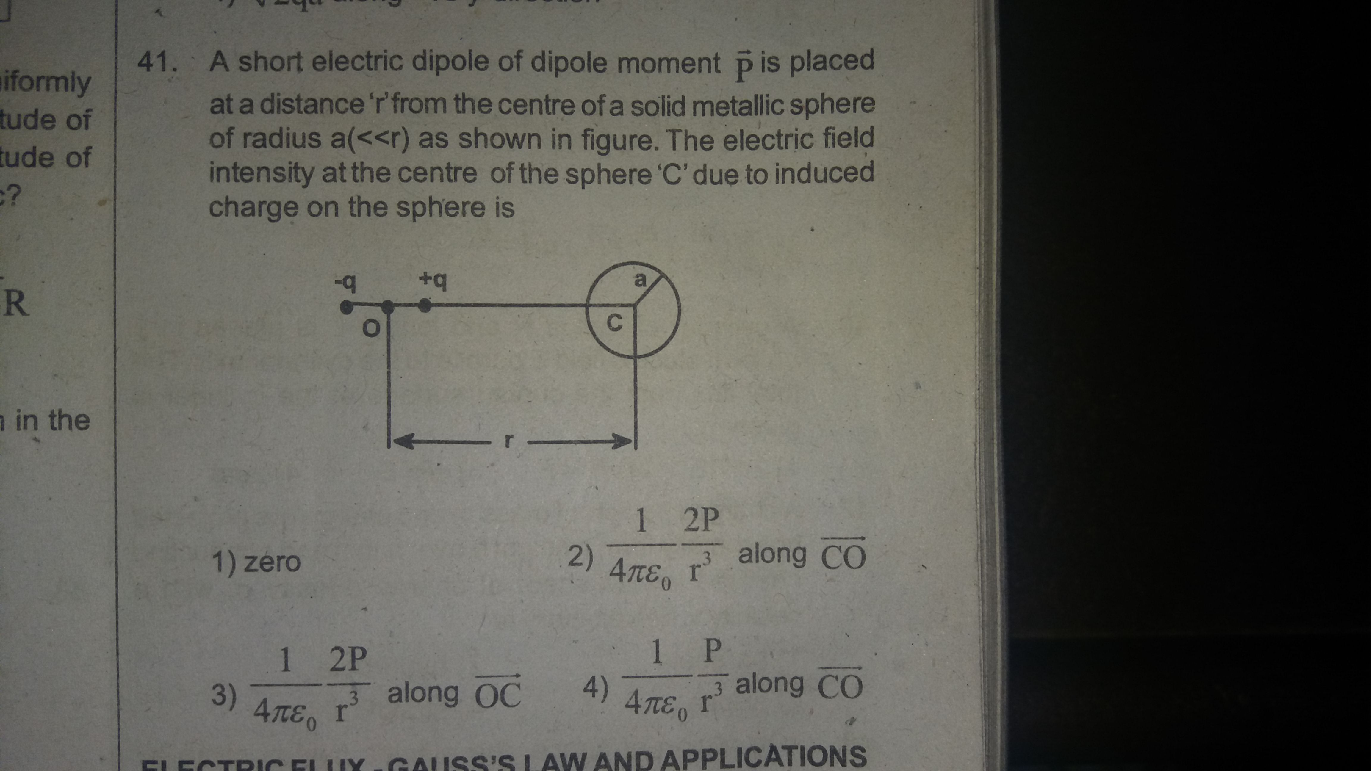 A short electric dipole of dipole moment P is placed at a distance r from the centre of a solid metallic sphere of radius a(