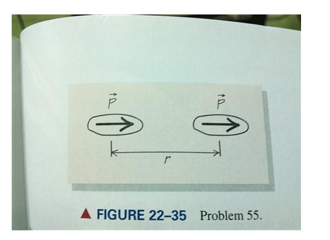 two molecules each wtih permanent dipole moment p are aligned as shown. calculate the force between the molecules if they are separated by a distance that is large compared with the dimension of the diples.(hint:the relation(1+x)^-2=1-2x+3x^2-........for small x is useful)