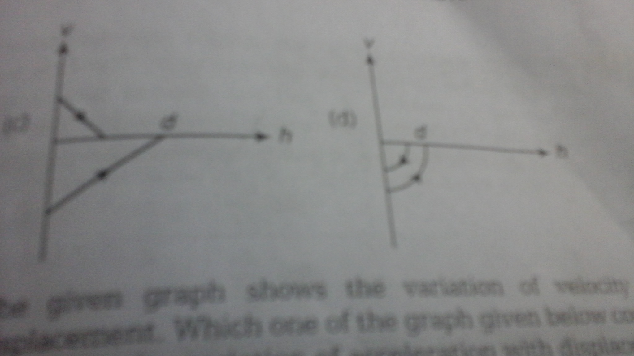 A ball is dropped vertically from a height of above the ground.it hits the ground and bounces up vertically to height d/2.neglecting subsequent motion and air resistance ,its velocity v varies with the height h above the ground is