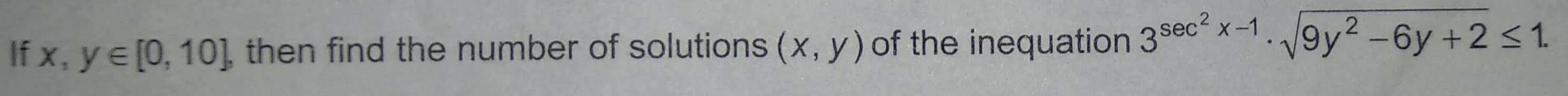 hence the product 3^(tan^2x)*sqrt((3y – 1)^2 + 1) is greater than or equal to 1. so for the inequality to hold, it can only hold if 3^(tan^2x)*sqrt((3y – 1)^2 + 1) is equal to 1.