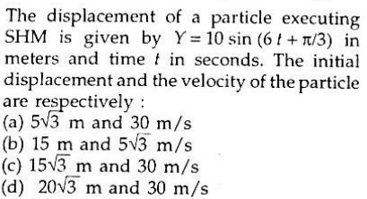 Displacement,y=10Sin(6t + \pi/3)            -----eq.(1)