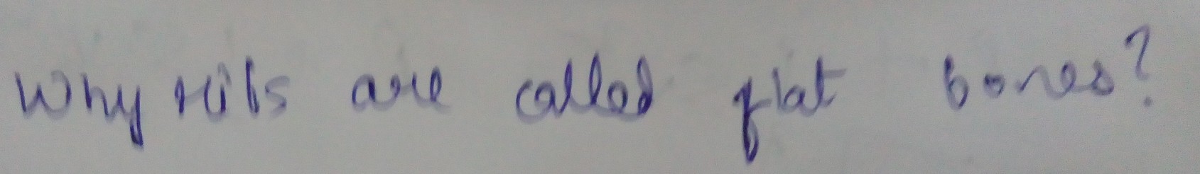Ribs are flat bones. They are thin with parallel surface having spongy bone tissue between compact bone tissue.Flat bones are strong, flat plates of bone with the main function of providing protection to the bodies vital organs and being a base for muscular attachment. The other examples of a flat bone is the Scapula (shoulder blade). The Sternum (breast bone), Cranium (skull), ilium (hip bone) Pelvis.